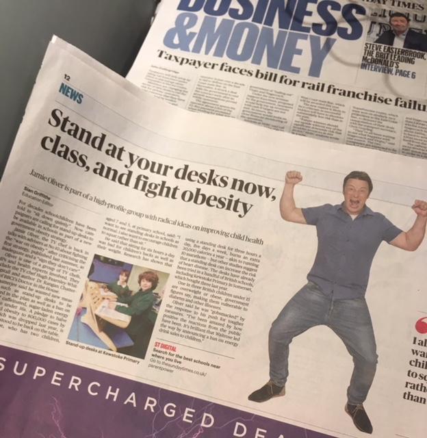 The education editor, Sian Griffiths was quoting both Jamie Oliver and Dr. Rangan Chatterjee (TV Doctor) on the issues around UK children and obesity and how having the option of standing desks in classrooms would help with the problem both now and in the future.